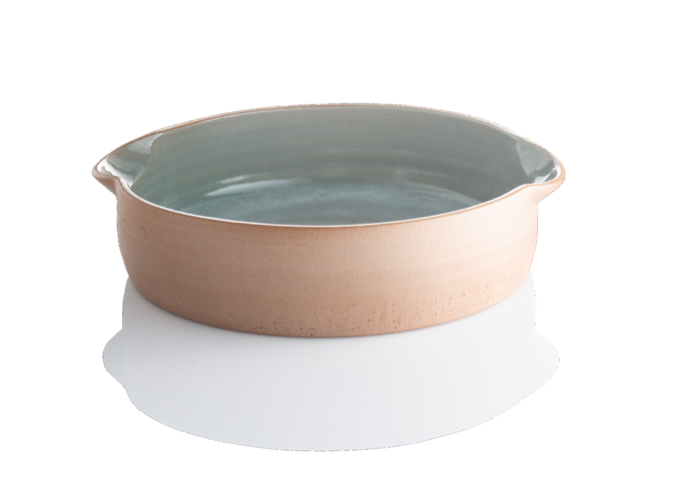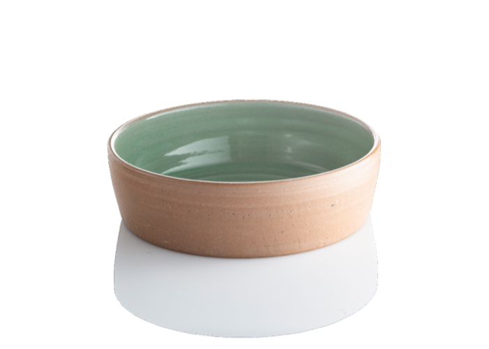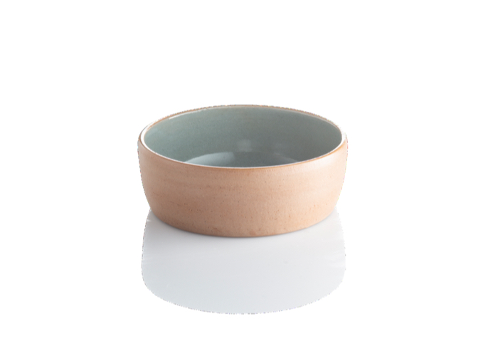 Skålen er hånddrejet i vores egen lerblanding, som blandt andet indeholder lokalt ler fra Sose syd for Rønne. Skålen er den mellemste i en serie på tre skåle, som er glaseret indvendig, mens den udvendigt står rå og uglaseret.